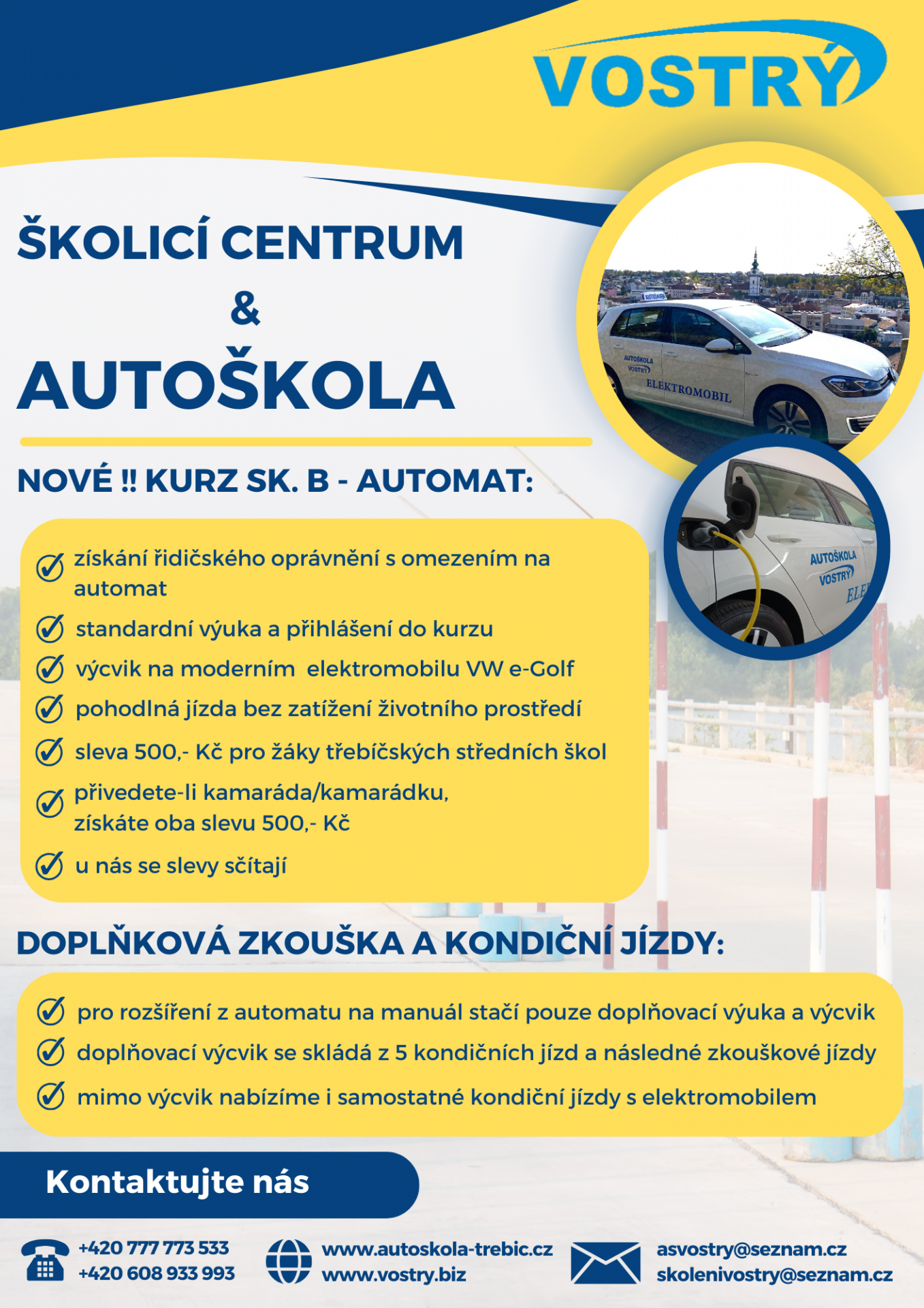 Nově nabízíme možnost získání řidičského oprávnění na elektromobilu s automatickou převodovkou.